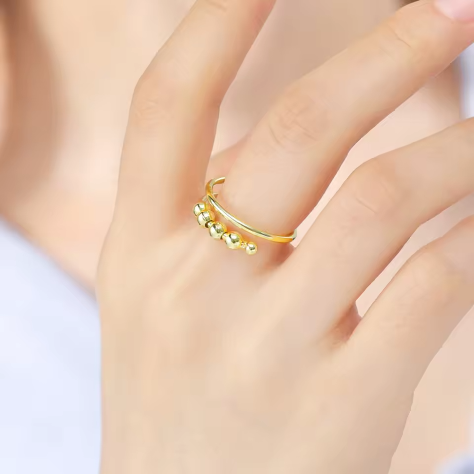 The Fidget Beads Ring is designed to ease stress and promote mindfulness. Its smooth, spinning beads provide a soothing, quiet motion—helping you stay focused, relaxed, and balanced throughout your day while adding a touch of elegance to your style.
